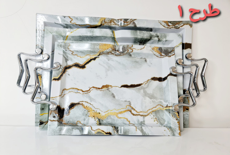 ست سینی کلاسیک ملامین کارن در سه سایز طرح سنگ